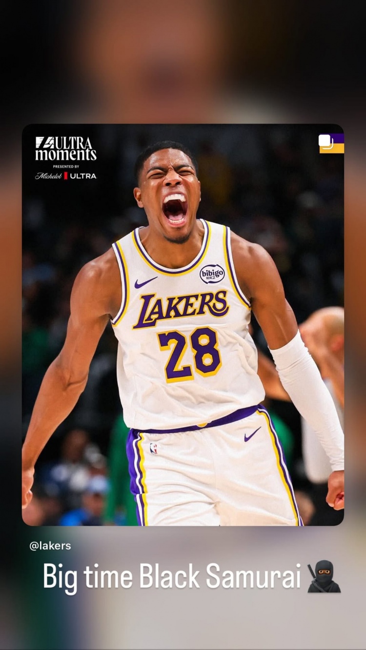 连进两记关键三分!詹姆斯转发八村塁庆祝照:大心脏黑武士